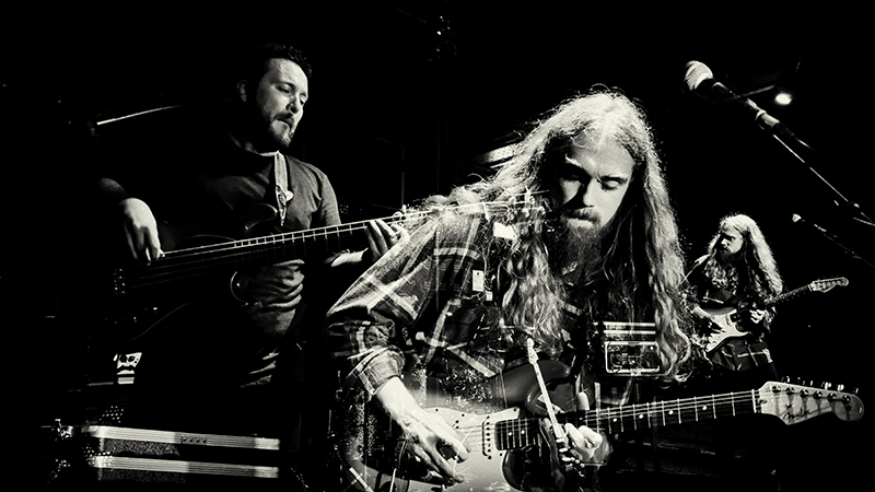 Crow Black Chicken are a hirsute band: in reverse order of beard volume the band are Steven McGrathon, bass (tidy goatee and flowing locks Robert Plant circa ‘73); Gev Barrett behind the kit (substantial full beard and sensible cut a lá Levon Helm) rounded out by guitar slinger and vocalist Christy O’Hanlon (a magnificent growth the length of Billy Gibbon’s set and the volume of Jerry Garcia’s with a luxurious pony tail). But they are more than just a collection of sedulously cultivated beards – they stormed their way through a two hour plus set of set of faultlessly executed mutated delta blues tunes with rock n roll panache and a hefty swagger. And no little sense of humour…