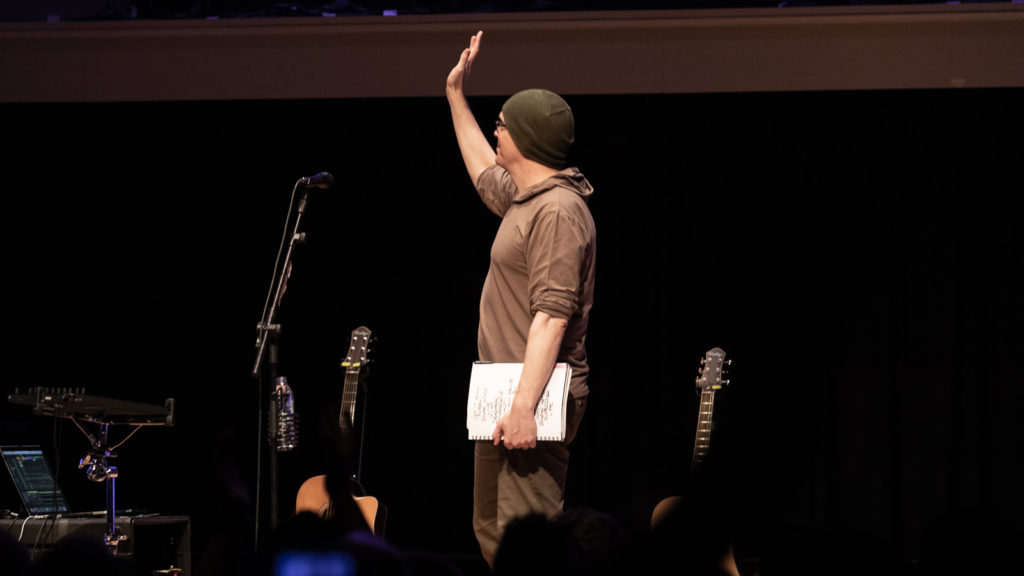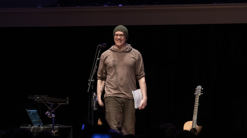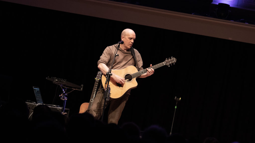 Having run out of time for audience questions during the first set, Devin packs them all into the second half of the show. In an attempt to keep some semblance of order, he’s solicited these in writing and proceeds to work his way through as many of them as he can. He reveals that Empath is, in part, about making peace with his younger wayward self, shares his considered opinion that while men and women may be “assigned different tackle” they are fucked up in similar ways, tells us that his favourite animal is the sloth, and asserts that being a rock star is a manifestation of mental illness. He’s a natural raconteur, making this rib-tickling stuff. When it comes to the work and his legions of devoted fans, however, he has a tendency to tie himself in knots of self-analysis – being grateful for all the attention and commercial success, but so riddled with insecurity that he feels unworthy of it. Typically, he’s self-deprecating and then criticises his own self-deprecation as a sign of weakness. Much more of this and he’ll make Woody Allen seem like a thrusting alpha male by comparison.