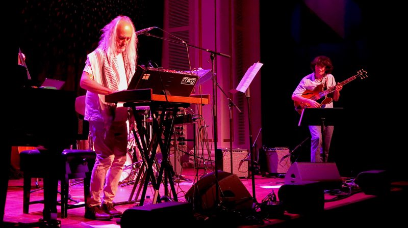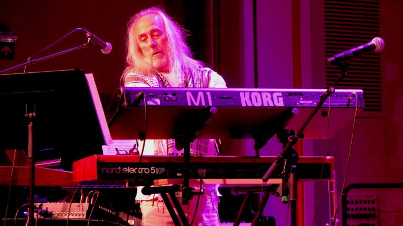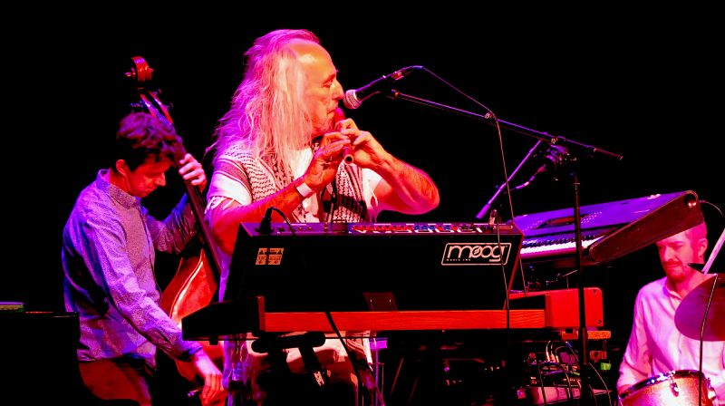 But the third half (yes, I know) was probably the most successful, being the other music Eddie had composed for the band. His lyrical piano introduction to To Plant A Tree inspired the guitarist to follow suit, making for a beautifully balanced and expressive piece. An unnamed second set tune (Airborn 4?) began with an Indian vibe, electronic drone under solo flute before a steady tumbril tom-tom beat set off a floating Albatross-meets-Autobahn guitar solo. Old school fusion excursion Rock Latin finished the first set with great collective energy and a hint of Santana while the final number – Okie Kayoke – was a fast and breezy tribute to trumpeter Kenny Wheeler that gave Rob the chance to unload as many notes as physically possible before the end.