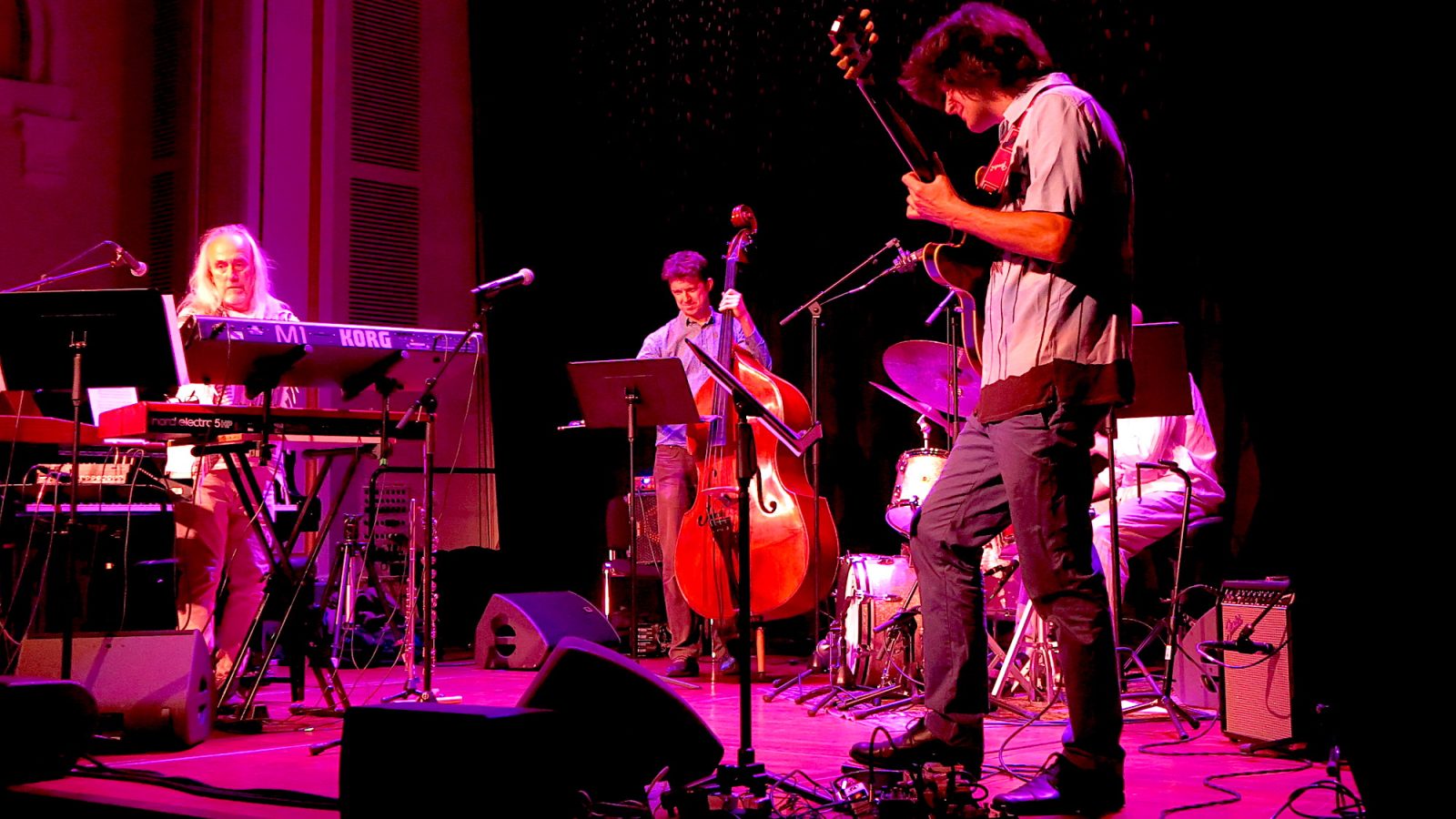 But the third half (yes, I know) was probably the most successful, being the other music Eddie had composed for the band. His lyrical piano introduction to To Plant A Tree inspired the guitarist to follow suit, making for a beautifully balanced and expressive piece. An unnamed second set tune (Airborn 4?) began with an Indian vibe, electronic drone under solo flute before a steady tumbril tom-tom beat set off a floating Albatross-meets-Autobahn guitar solo. Old school fusion excursion Rock Latin finished the first set with great collective energy and a hint of Santana while the final number – Okie Kayoke – was a fast and breezy tribute to trumpeter Kenny Wheeler that gave Rob the chance to unload as many notes as physically possible before the end.