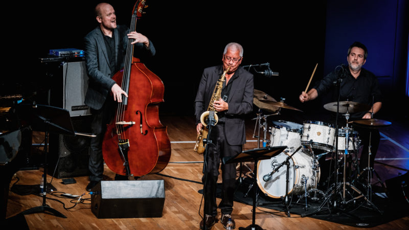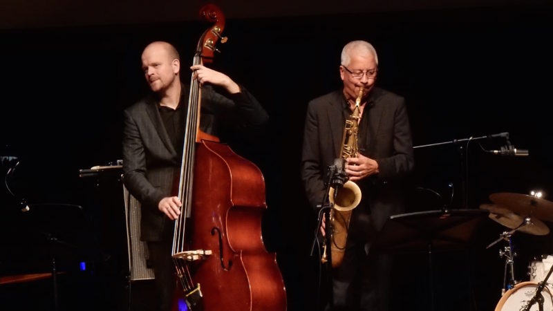 It’s a fair bet that very few of those thronging St George’s spanking new foyer and bar had ever seen (or even heard) Norwegian pianist Espen Eriksen before this night. But when your good friend brings along their new friends you can take it on trust that you’ll all get along, and Andy Sheppard’s catalogue of past collaborators is impressive. Nevertheless the almost palpable warmth that greeted the four musicians on stage was clearly a collective ‘welcome home’ to the now Portugal-based saxophonist.