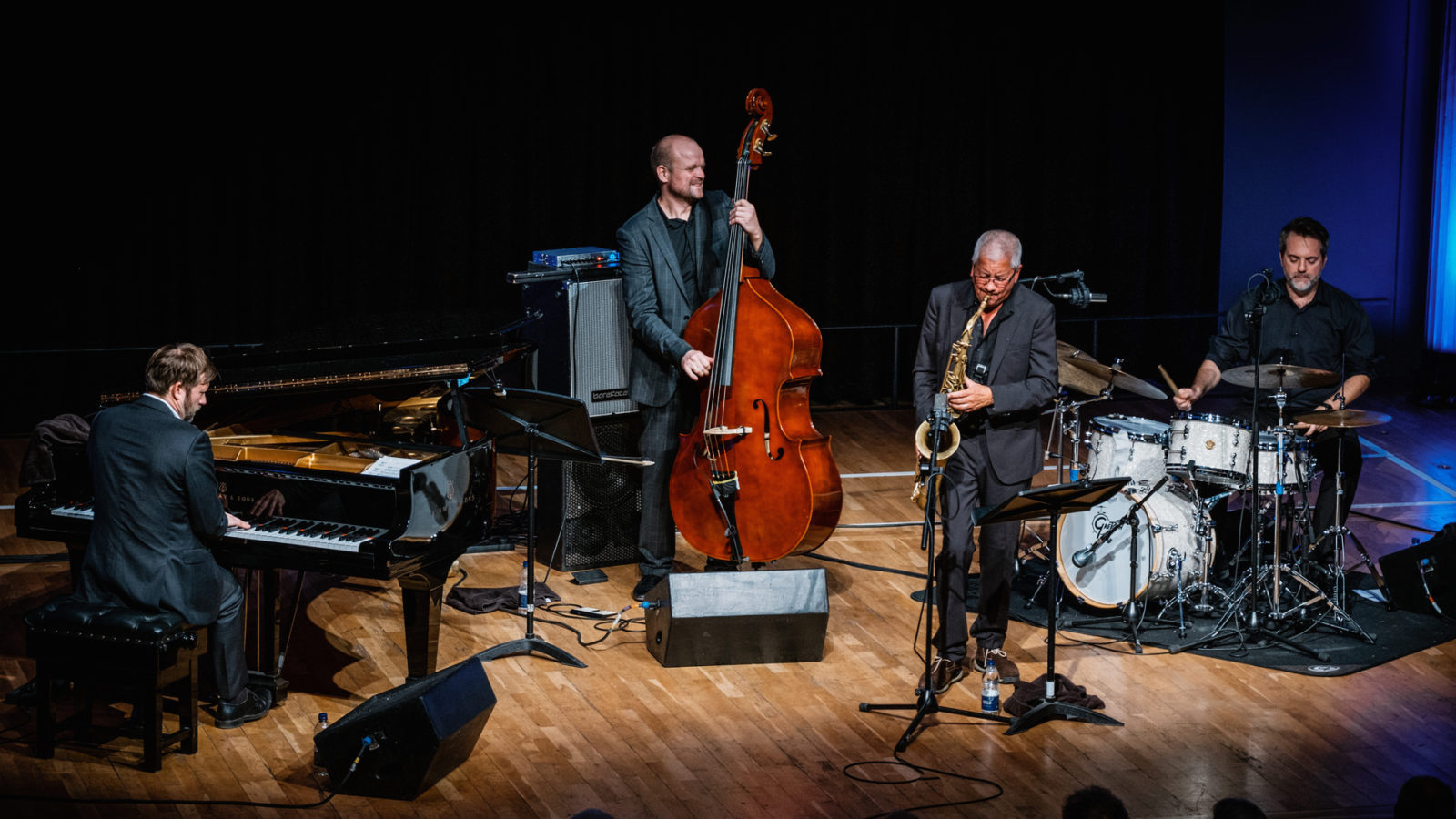 It’s a fair bet that very few of those thronging St George’s spanking new foyer and bar had ever seen (or even heard) Norwegian pianist Espen Eriksen before this night. But when your good friend brings along their new friends you can take it on trust that you’ll all get along, and Andy Sheppard’s catalogue of past collaborators is impressive. Nevertheless the almost palpable warmth that greeted the four musicians on stage was clearly a collective ‘welcome home’ to the now Portugal-based saxophonist.