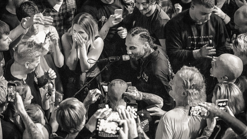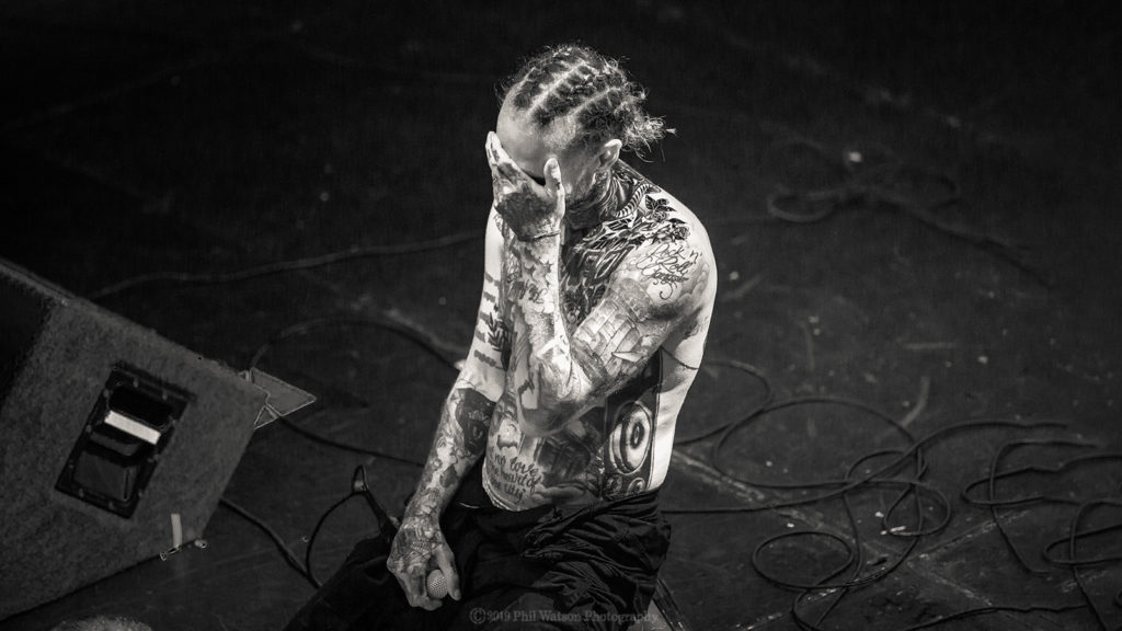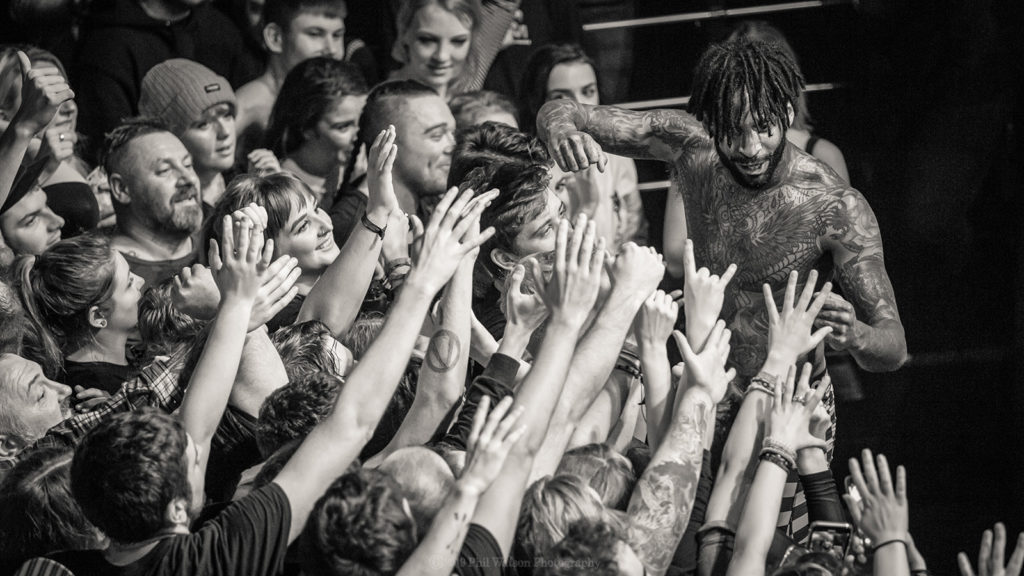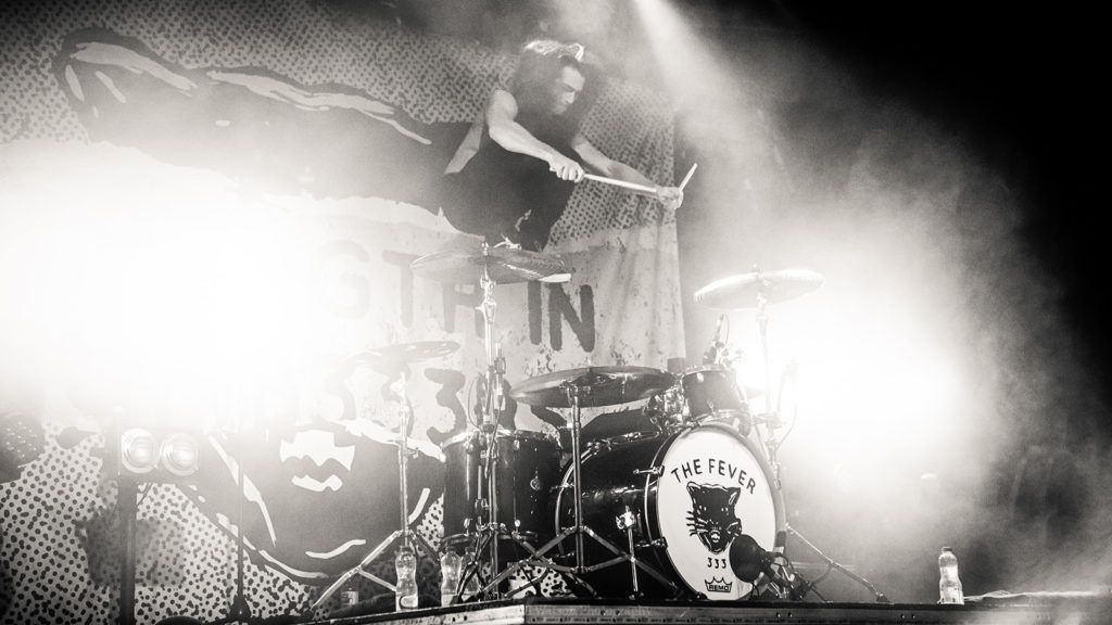 Being a three-piece (no bass guitar, you’ll note), a certain amount of augmentation is required to perform these songs live, but this never becomes obtrusive. By Out of Control, Butler has bounded into the audience to crowd surf and be borne aloft, impressively continuing that barrage of his wordy lyrics throughout. Arguably their best song, One of Us sounds absolutely fucking enormous – an incendiary fusion of riffage and fury that hits rather like a hard rockin’ N.W.A. It’s compositions like this, along with Animal and Burn It, that showcase Fever 333 at their best.