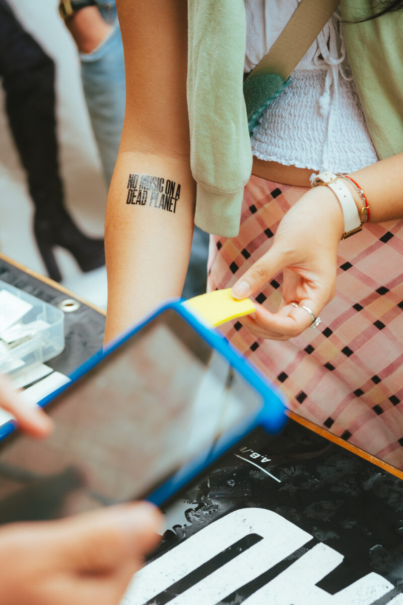 Extinction Rebellion’s Music Declares Emergency were at the festival, signing people up to their No Music on a Dead Planet pledge – photo: Giulia Spadafora