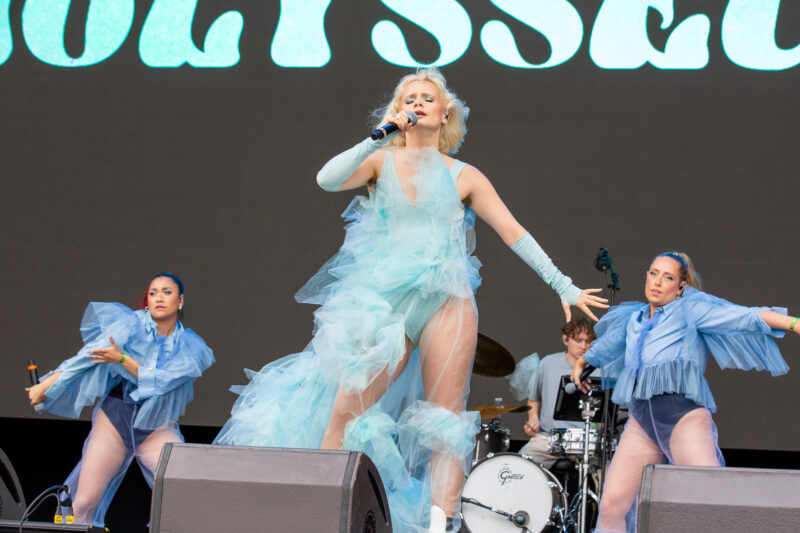 Holysseus Fly was suitably euphoric, swathed in bubblegum blue and hitting the sweetest high notes while performing with her two backing dancers.