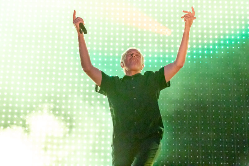 I don’t think there are words to describe how in awe I was watching Underworld. Kicking things off with their dance track Two Months Off, the band were in fine form and this was reciprocated by the crowd who went feral.