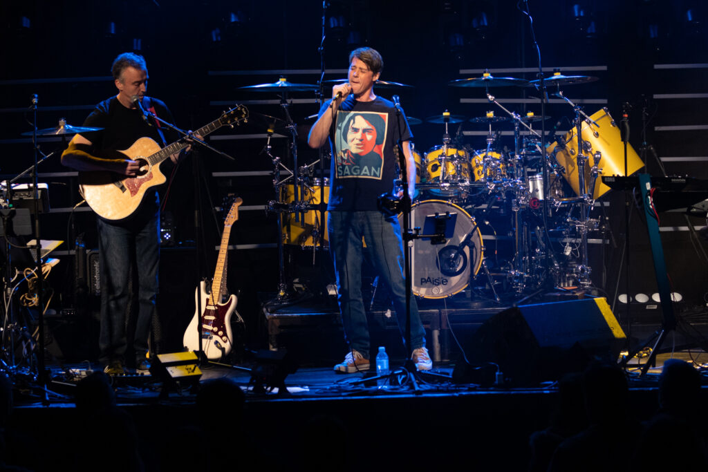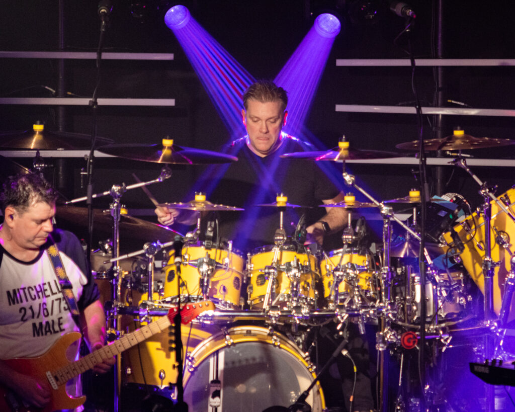 Clearly conscious of the fact that we’ve all waited an awfully long time to see them again, thanks to covid and the band members’ many other commitments, the prog supergroup deliver a set that’s rich in old favourites while showcasing their excellent more recent stuff, such as the pleasingly bleak Island Life. Guitarist John Mitchell gets his chance to shine in Dear Dead Days, the only song drawn from 2008’s Experiments in Mass Appeal, his slightly harsher, Gabriel-esque vocals blending perfectly with Godfrey’s more mellifluous tones, the three-part harmonies being completed by Level 42 guitarist Nathan King (playing bass in Frost*). Back in Bath just a couple of months after playing at the Forum with Steve Hackett, ace drummer Craig Blundell is positioned centre stage behind his giant yellow kit.