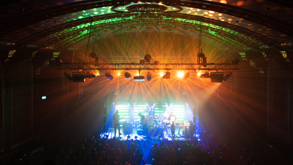 “This venue is great, isn’t it?” quips Stevenson of the ornate former Beau Nash cinema. “It’s like the inside of my nan’s head – including the bar.” Little wonder Frost* chose not only to play their first local gig in six years here, but also to bring along a multi-camera set-up to film the whole show for future release. An obviously very expensive lighting rig even makes use of Komedia’s ceiling as the packed audience is enveloped in sound and light.