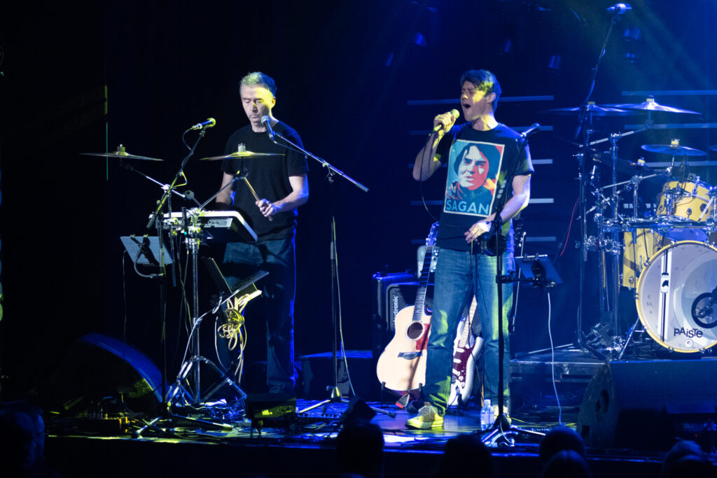 Genre definitions aside, they certainly know how to win over a prog audience with a performance that occasionally feels like a self-deprecating stand-up comedy act interspersed with the odd song. And those songs are certainly odd, or erudite and idiosyncratically quirky if you prefer. One minute they’re referencing the Fermi Paradox and Carl Sagan; the next they’re quoting W.B. Yeats’s The Second Coming and taking a guffawing left turn into the Yes catelogue. The duo certainly succeed in conjuring up a spacious sound, and by the end of their short set we’re yearning to hear these songs performed by a full band. Job done.