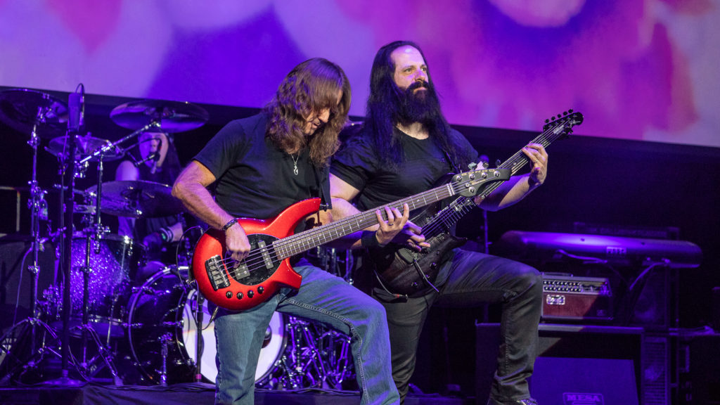Time for what John Petrucci himself describes as the “metal portion of the show”. And who’s that he’s got sitting behind an unusually tiny drum kit? Why, it’s Mike Mangini, who ditched academia for a life of prog-metal. That means we’ve got two-fifths of Dream Theater on stage before our naked steaming eyeballs. Flying Colors bassist (and former Joe Satriani sidekick) Dave LaRue completes the instrumental trio, who eschew Dream Theater stuff in favour of tracks drawn primarily from Petrucci’s Suspended Animation solo album.