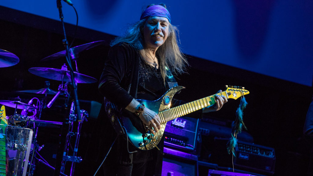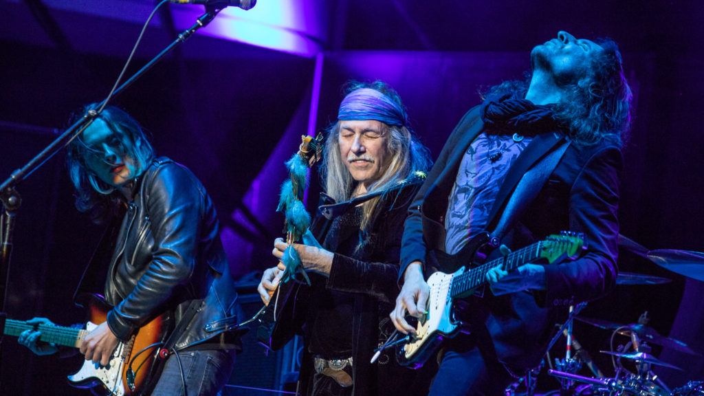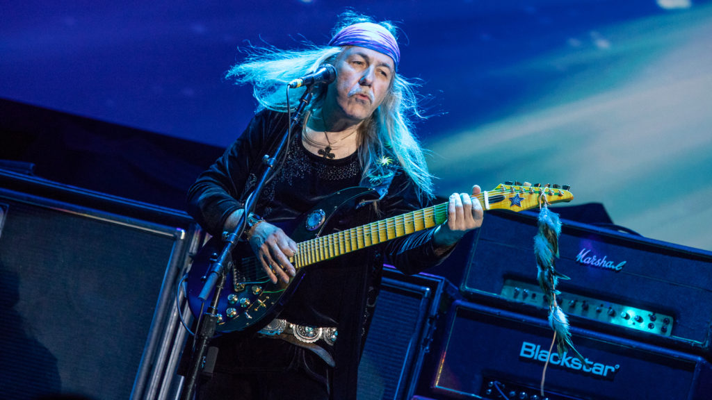 But they’re not done yet. The G3 format requires all three guitarists to come together as the world’s most over-qualified covers band for a lengthy encore, with the accent on having fun with some familiar songs. Niklas Turmann also returns on vocals for a romp through Deep Purple’s Highway Star, during which they each take turns to be Ritchie Blackmore. Uli Jon Roth then assumes centre stage for his party piece, All Along the Watchtower, which, like the ensuing Immigrant Song, is stretched beyond its elastic limit to accommodate all the soloing. Excessive? Perhaps. But we came for guitars and guitars are most certainly what we got.
