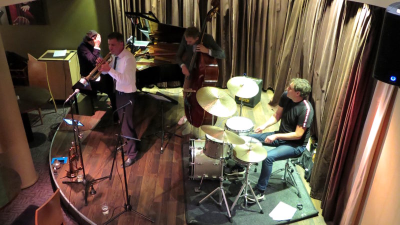 There’s a lot of work that lies behind any album release and, for all his relaxed demeanour, trumpeter Gary Alesbrook can’t but have been pretty stressed. Happily the London launch of Stories We Tell Ourselves had already gone well and it was a home crowd filling Future Inn’s downstairs jazz club. It all boded well, and so it would prove.