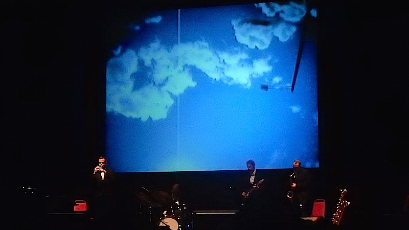 And here we go … it was the opening night of the 6th Bristol International Jazz and Blues Festival and already there was some serious congestion around the free stage in the Colston Hall Foyer. A powerhouse performance by the Bristol University Jazz Orchestra was followed by the laid back loucheness of Kevin Figes ‘library music’ project Underscore, a loungeworthy set of incidental music from forgotten films and TV shows coolly delivered without irony. The latter made an excellent introduction to Bristopolis, a specially commissioned film by John Minton with live soundtracking from Get The Blessing that was the main hall show for the evening.