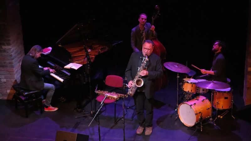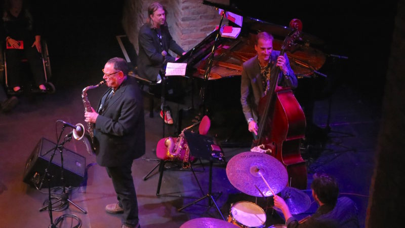Looking round at the Old Vic’s new Weston Studio, with the classic grand piano, double bass and drums set up facing the horseshoe of seating, it certainly felt right for jazz. It was something about the rough-hewn brickwork and girders and the fact that it was physically underground, perhaps. But far from shabby, too, and – as it proved – pretty good acoustically (something powerhouse saxophonist Gilad Atzmon was obviously determined to test).