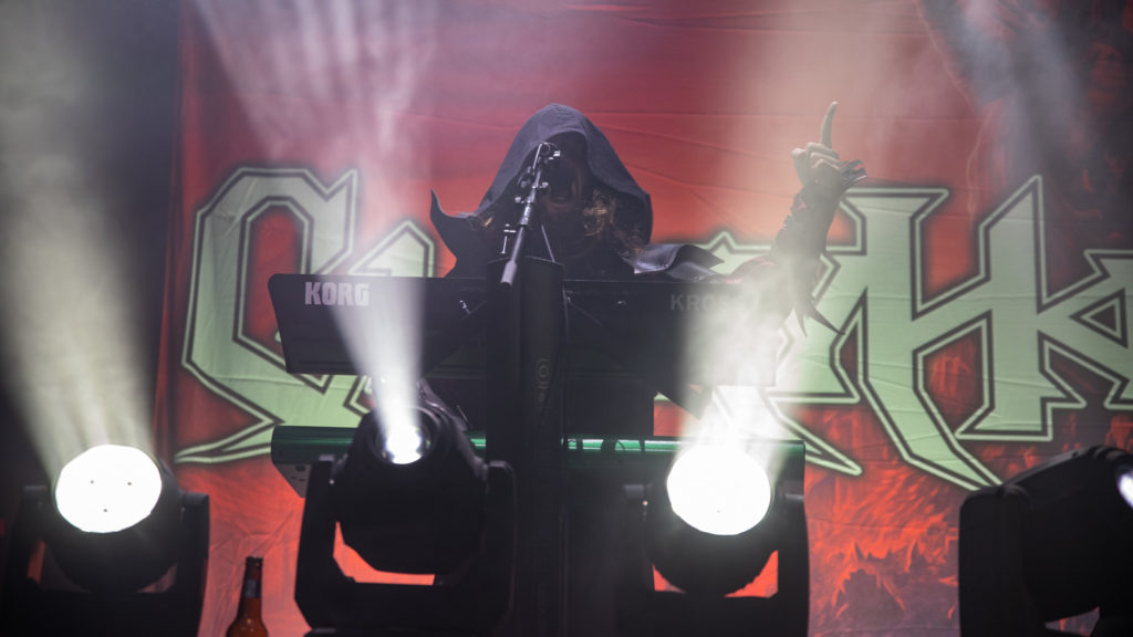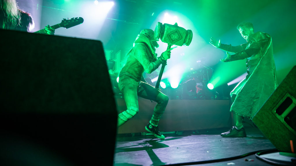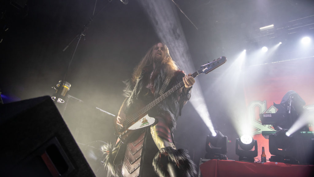 They’ve only got a 30 minute opening slot, which is probably just as well given that stocky frontman Francesco Cavalieri must be sweating like a pig inside that heavy outfit. But they hit their stride and succeed in getting the entire audience onside with the infectious tavern singalong Drunken Dwarves from new album Wintersaga. A metal reworking of the Diggy Diggy Hole meme keeps up the momentum and has everyone bellowing along with the chorus as though they’re the headlining act.