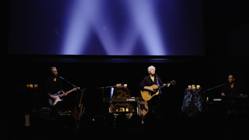 Lights are subdued, big candles sit at the back of the stage and their flames dance on the rhythm of the music, which only enhances the spiritual effect of the venue. The quiet crowd piously listen as if attending a religious service. Graham Nash is accompanied by outstanding musicians: Shane Fontayne on the guitar, long-time colleague and producer of his last album This Path Tonight, and Todd Caldwell on the keyboards, who used to play with CSN.