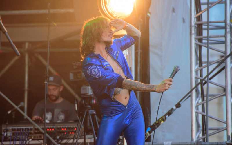 The Darkness are Sunday’s headliner and their brand of cock-rock gets Lloyds Amphitheatre punching the air, throwing beers around and trying out frontman Justin Hawkins’ signature falsetto for themselves. Hawkins warns that this set will be mostly be made up of music “from yesteryear” which seems to excite the front row, some of whom are already donning Darkness merch.