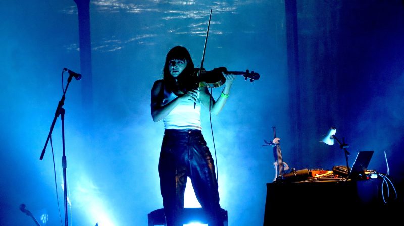 Holden & Zimpel had been preceded, however, by what was probably the most divisive performance of the weekend. The backlit silhouette of Matthew Bourne was hunched against an upright piano as he accompanied the almost invisible singer Keeley Forsyth in fogbound gloom. Her songs were raw, sepulchral pieces delivered in a harshly stylised way that often made it hard to catch all the lyrics. Nevertheless, it was impossible to mistake the simmering feelings of hostility and bleakness in what felt like a classical song cycle of despair. She prowled restlessly, arms and hands twisted about her, striking poses, her long hair shrouding her face. The result was powerfully charged theatre like a musical Beckett piece – Unhappy Days, perhaps?