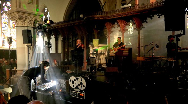 The performance was by Woolheads, a clever art-pop duo of intoned poetry over live electronic backing, with Uta Baldauf’s gentle German accent helping to take the crammed shop to the Berlin underground. It was engaging and smartly executed stuff but, as the air in the room began to run out, I slipped out into a damp Stroud backstreet and headed for the main venue in St Laurence Church.