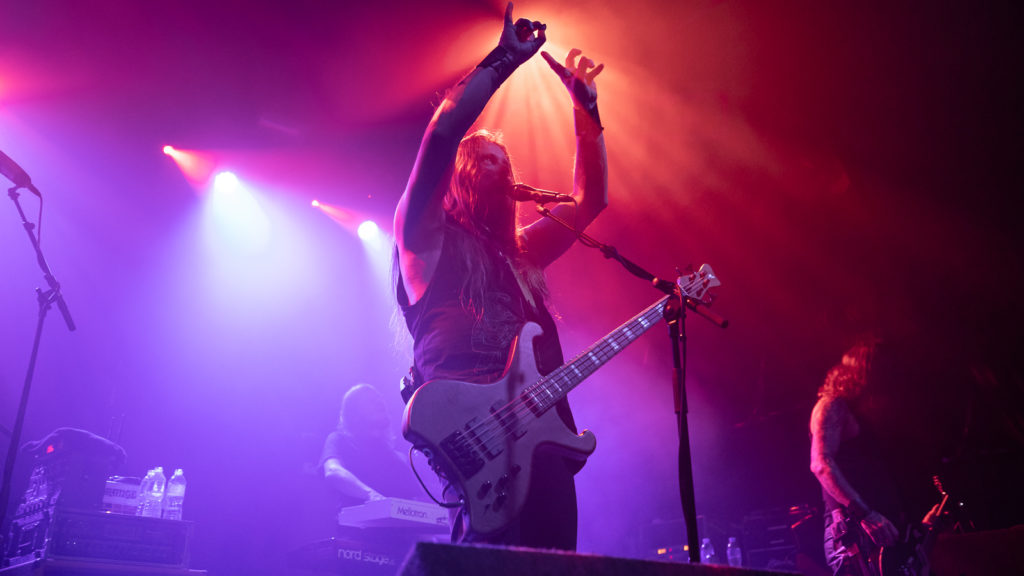 Two other folklore-driven songs from the (Norwegian) Grammy winning current E album get an airing – including Sacred Horse, accompanied, fabulously, by a projection of, um, a sacred horse. But rather than serving up the usual crowd favourites this time, they dig deeper into the catalogue for a fans’ selection of rarely aired material. Havenless from Below the Lights is a particular treat, being built around a huge Tyr-style chant with a titanic riff, while 1994’s Frost album is revisited for Isöders Dronning and a stirring Jotunblod.