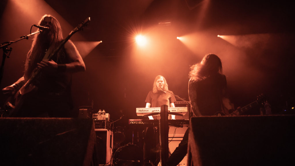 That recent tour with Opeth certainly seems to have had an effect on Enslaved in general and Kjellsson in particular, who has become increasingly Mikael Akerfeldt droll in contrast to the band’s dense, heavy progressive music. The Enslaved raiding party has also been posting Spotify playlists and snaps of its vinyl booty during this trek, which proves instructive when it comes to deconstructing their hugely impressive music. Modern extreme and progressive metal rubs shoulders with classic English prog (Yes, Floyd, Genesis, Soft Machine…even Canterbury scene obscurities Egg), the outcome of this melting pot of influences becoming apparent during all 11 minutes of Storm Son – arguably the quintessential Enslaved song, being complex, aggressive, imaginative and unfailingly melodic. Truly, these guys are the King Crimson of black metal.