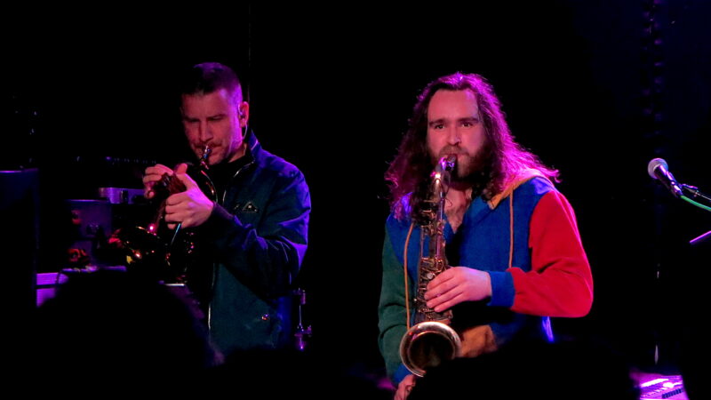 A couple of numbers were pure synth duels as Doug’s sax got a rest. Sustained Lemon Attack growled and grew, stabbing keys evoking tortured cats brusquely swept aside by another big riff, Clumsy by contrast was a slice of light-hearted wonk giving Henry the chance for some show-off soloing. The evening’s only vocal moment (cats notwithstanding) came from Pocket Sun’s Gina Marie Tratt on Lucky Charms, a spacious and catchy tune with deceptively hasty drumming and wide open atmospheric synth lines. The set’s other guest, trumpeter Gary Alesbrook, joined them for Honk, a big old-school production of tight and funky brass unison playing, economically delivered keys and brisk and snappy drumming. Toby got to really stretch out on this one as the two horn players traded ideas until the wall of sound gradually reassembled to round things off.