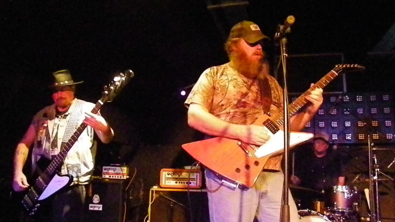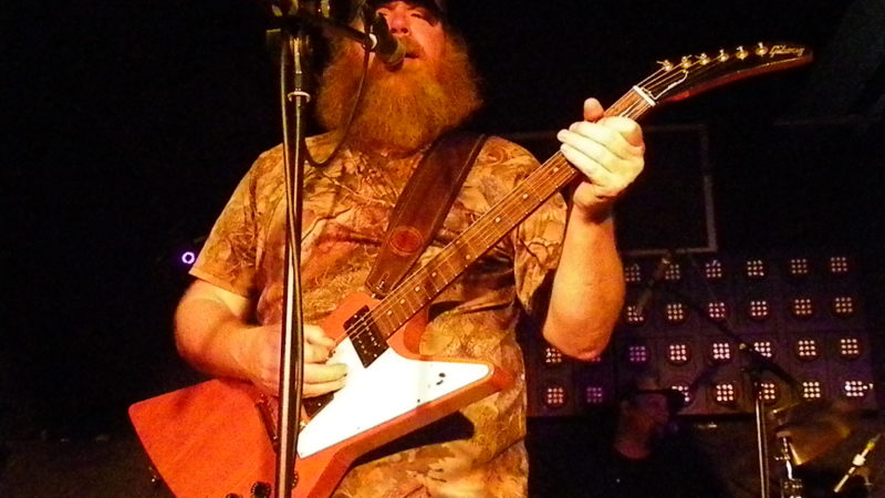 Johnboat Jones took most of the lead vocals and was a massive presence on stage: six foot plus of jeans, huntin’ tee shirt, trucker hat and with more facial hair than a packed popup cafe full of Stokes Croft hipsters. His Gibson Explorer may have looked like a ukulele in his hands but he played it like a melon farmer.