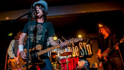 Johnboat Jones took most of the lead vocals and was a massive presence on stage: six foot plus of jeans, huntin’ tee shirt, trucker hat and with more facial hair than a packed popup cafe full of Stokes Croft hipsters. His Gibson Explorer may have looked like a ukulele in his hands but he played it like a melon farmer.