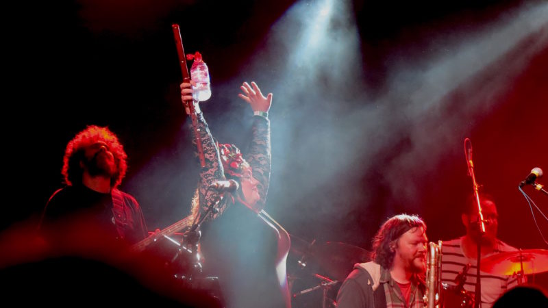 Other numbers dipped into bluesy Balkan two-step, a lost funk-rock collaboration between Queen and Sly Stone and an 80s 3-chord power pop number that might have been in the Mute label’s back catalogue somewhere. Needless to say, the singer swept imperiously through it all, with either a fearsome glower or radiant delight on her face, alternately berating and beloving her subservient crowd. Whether judged as music or as entertainment this was all top quality stuff and exactly the party a cold, wet night needed.