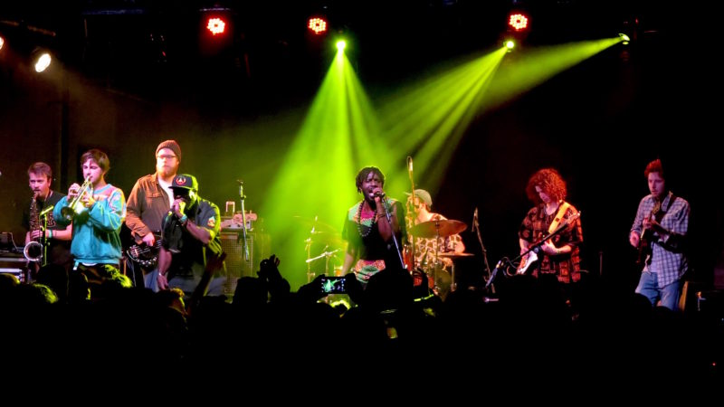 It was definitely a case of ‘follow that’ for Sheffield’s KOG and the Zongo Brigade but follow that they did, after a helpful set from DJ Hiphopapotamus took us Africawards in readiness. Bursting out with Turn Up The Music Please, they introduced their hip-hop influenced take on HiLife’s brass-embellished riffs. The energetic frontline pairing MC Franz Von and singer K.O.G. seemed equally at home riding the Ghanaian beats as Congolese soukous (complete with convincingly ringing guitars) or even straightforward reggae. It was another party set, for sure, rewarded with an energetic dance floor and much warm appreciation.