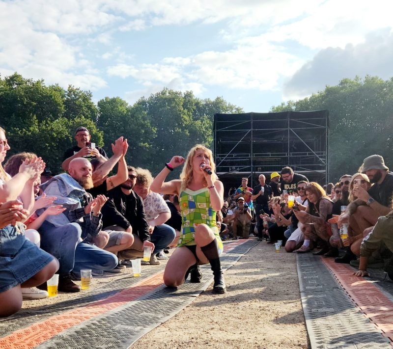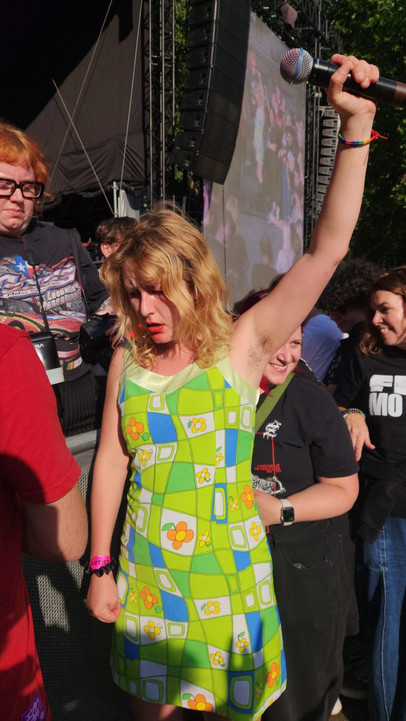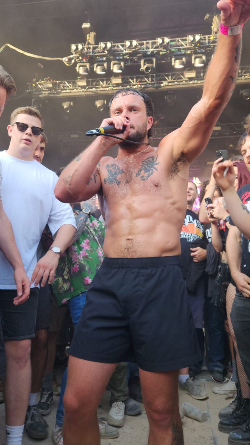 Lambrini Girls were made for Bristol, and for this bigger stage. As Lunny splits the crowd, she swiftly nips back to the barrier, leaving a sea of sweaty limbs behind her. The dust is flying early doors, and circle pits are alive and flailing.