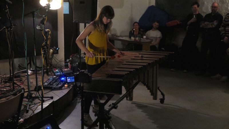 First up was Harriet Riley, a diminutive figure behind the sprawl of her marimba, with an acoustic set of music she has derived from Mexican, Indonesian and Balinese traditions plus a cheeky transcription of Dave Samuels’ jazz-rock solo Footpath. The traditional music ranged from structurally complex cross rhythms to closely disciplined almost mathematical progressions, while Footpath swung between moments of stick-blurring frenzy and periods of cool jazz development. It was hard not to be simply focused on the darting and weaving of those sticks but Harriet’s evident understanding of (and passion for) the music ensured it wasn’t simply a display of virtuosity.