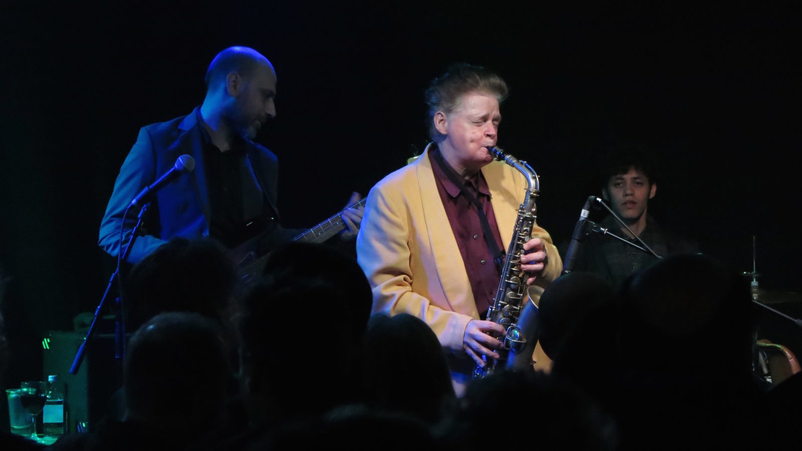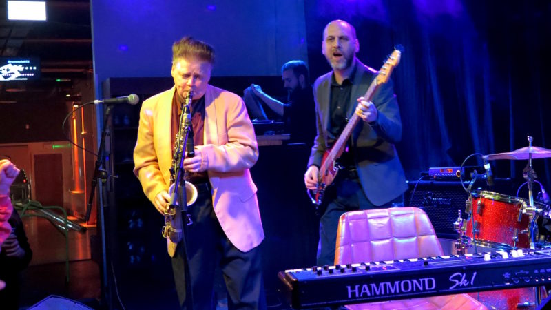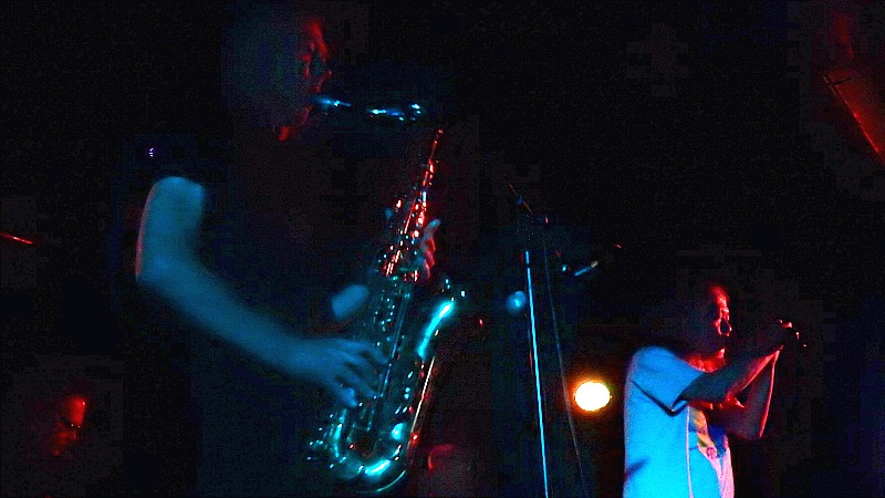 Again, the echoes of punk and post-punk sonics felt appropriate in setting the scene for the headliner who had actually arrived and made his way stiffly onto the stage, saxophone in hand, his distinctive flat top hair style and lounge lizard jacket marking him out in a generally drably dressed event. The opening number – Gil Scott-Heron’s Home Is Where the Hatred Is – was alarmingly sedate, with a tidy backing and moderated strained vocals. Happily, however, that was just a warm up and as he moved over to the Hammond things began to sizzle into more hoped-for shape. His brand of funk keeps the essential loop and groove construction of the music but opens it to harmonic explorations and idiosyncratic rhythms. James Chance’s declamatory vocal delivery, punk style, also adapts James Brown’s original whoops and hollers but from a different tradition and root.