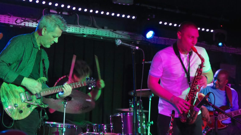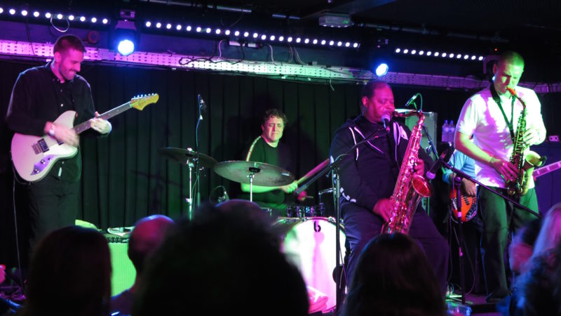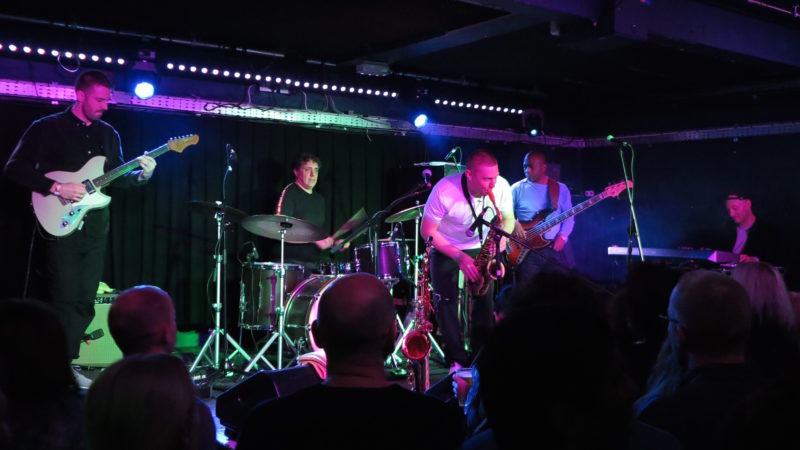 Things started smoothly enough with a coolly gospel flavoured blues that let guitarist Charlie Allen off the leash. His stylish solo was the first of many, on this occasion matched by Anders Olinder’s Hammond-style keyboards while James played it cool on alto sax. By contrast, a subsequent jazz funk workout started in smooth jazz territory, the ultra-tight rhythm section driven by Ian Matthews’ strict tempo drumming and Flash’s precision bass playing by the book until a call-and-response section between James and Anders escalated into something incendiary. The drumming intensified, the sax grew more frenzied and the whole thing exploded before falling back into place and quietly ending. The more soulful Steps that followed slipped easily into a cover of Ain’t Nobody by which time there was some serious dancing in the house.