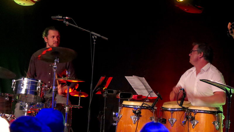 The band’s set was a well-judged mixture of original composition and Latinised jazz classics like Nat Adderley’s Work Song (Inspiration for some burning Montuno piano) and the oddly broken melody of Thelonious Monk’s Bye-Ya with its elastic bass playing. One especially high point was Jim’s take on Chucho Valdez’ arrangement of La Comparsa, a complex piece of interaction based around a rock-steady bassline that eventually spawned a snapping drum solo. Another fine moment was the fast post-bop of Nothing Personal gifting Jim the opportunity for forceful two-handed playing while Michel’s cutting trumpet tone went straight to his Cuban roots. That number also fuelled an excellent double percussion solo.