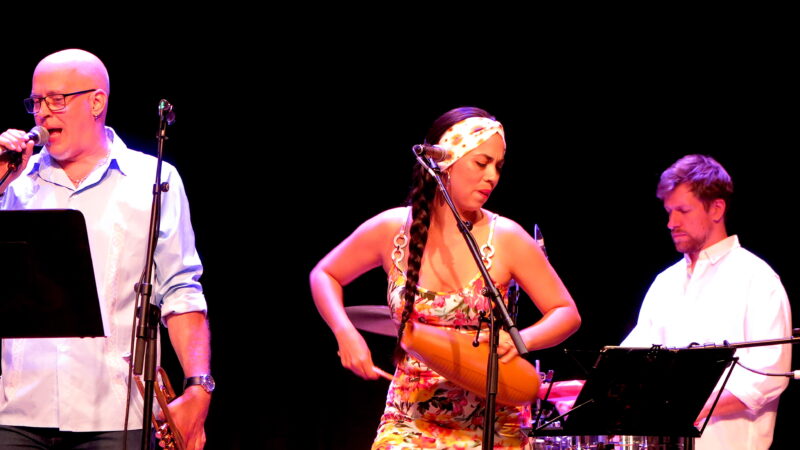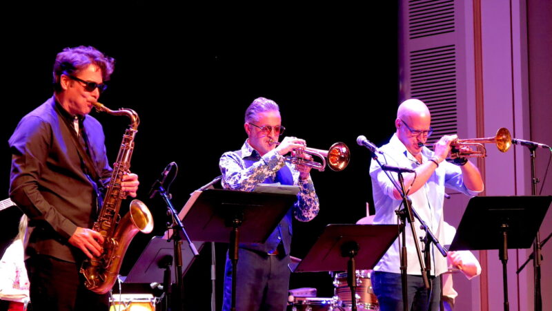 The arrival of vocalist Luisa Santiago was the icing on the cake – the modulated power of her astonishing voice, her expressive face and sinuous dancing took us straight to the Caribbean. Classics like Celia Cruz’ Toro Mata sprang to life as did her duet with fellow Cuban Michal on the beautifully poised Dos Gardenias. The latter had been introduced by Jim’s memorable piano improvisation that subtly moved from meditative jazz into the Latin mode, with Michal’s trumpet adding a scorching interlude to the song.