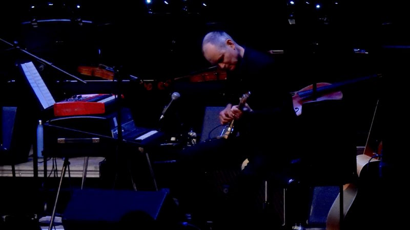 Of the three it was the diffident Huw that had the advantage of being most Drake-like as well as getting Riverman, probably the one of Nick’s songs that people might know. He took that responsibility sensibly, leaving the Lochrian String Quartet’s delivery of Rob Ellis’ shivering string arrangement to tell the story’s underlying sadness. Similarly, Time Has Told Me came across as almost spoken in Huw’s noticeably Welsh inflection. Nadine Houri gave an easy jazz flow to Chime of the City Clock, though her voice had to compete with an almost too busy string arrangement before the number resolved into a simple duet for glockenspiel and guitar that could have been a lost 60s spy theme. She fared much better with Pink Moon, John Parish strumming out the Joni Mitchell-style acoustic guitar while Nadine’s languid vocals stretched the song’s handful of whimsical lyrics nicely.