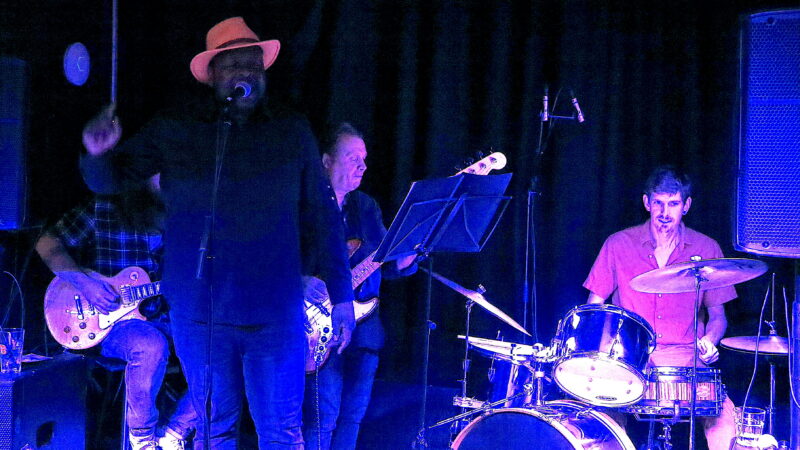 The album – which they played in full – covers a fair range of styles. There was a New Orleans slink to The Delta Du Bruit song, with drummer Pete Warner adding touches of Mardi Gras percussion while he provided a classic straightahead railroad shuffle drive for the defiant Aint Got Time. The swing beat number No Fuss Buss got a big Hammond organ sound from keyboard player Evan Newman and he switched to boogie piano for the upbeat ballad Down To The Border. Lyrically things went from the smartly elaborate (No Fuss Buss) to the outright down and dirty (I’m Ready) and Kirris seemed equally comfortable with both, confident in a strong voice that eschewed fancy business in favour of clarity, tone and impeccable timing.