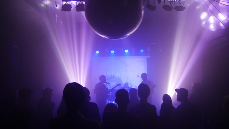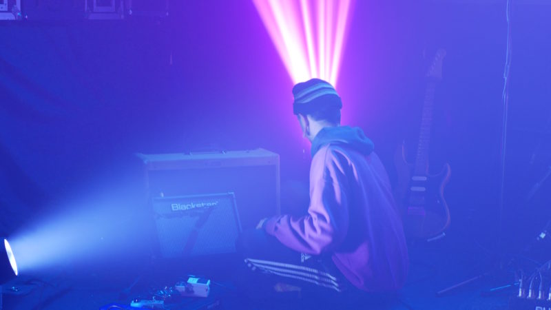Tahini Dream was midway through his set as I arrived, a one man show which consisted of intense looping, a lot of shift pitching and swirling effects, all accumulating to make for an atmospheric wall of sound. Pink lights oozed onto the stage, I imagined Tahini Dream’s music would work well in an environment such as The Crypt, swirling synths reverbing from the arches and exposed brickwork.