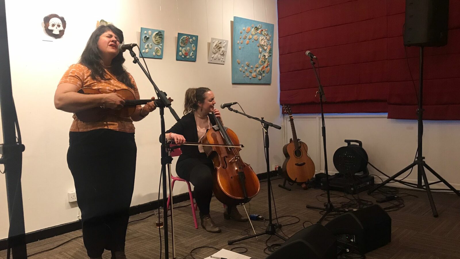 And then she’s on stage, fiddle in hand, joined by Valerie Thompson on brilliant Cello, accompanying Hart on The Rakish Young Fellow and then Yellow Handkerchief.