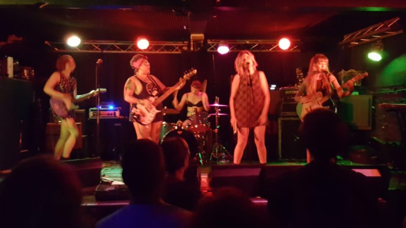 Lemuria take to the stage with an extra member: Tim of indie-punk band Woahnows. They play their now ten-year-old album right through, only pausing for a quick break to tell everyone their nicknames which all relate to meat – singer and guitarist Sheena is Lil’ Salami, while new addition Tim is Roast. The audience giggle appreciatively, and you get the feeling everyone here has seen Lemuria a fair few times before.
