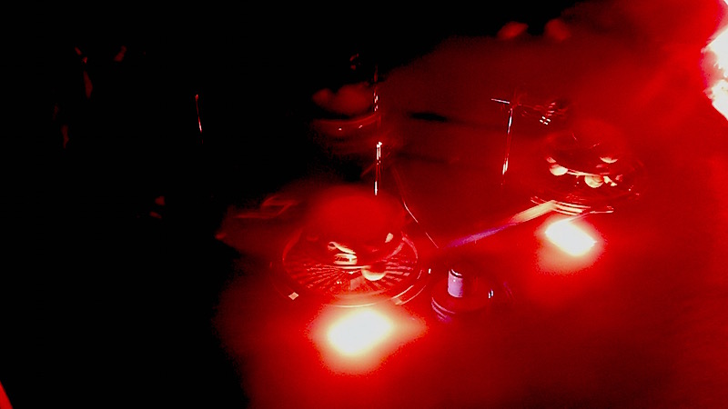 Copper Sounds had promised rock music and indeed that was what they delivered via a triangular contraption on the floor in the downstairs room. Three linked bicycle wheels each bore a medium sized lump of stone which, as they turned, interacted with microphones and triggered synthesised sounds. One scraped out an irregular looping rhythm, one brushed out bursts of noise and the third bashed the pulse beat. It was an ingenious and witty idea, allowing for the electronics to evolve and revisit the essential rhythmic minimalism with a kind of sub-Dub formality, and the whole thing was enhanced by sound-triggered bursts of red light that encouraged staring at the structure as those diligent rocks rotated.