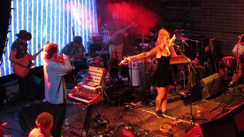 It was an energetic set of songs, with the twanging guitars of the more pastoral numbers like Made of the Sun recalling their earlier cosmic sound while The Uncertainty Principle’s funky futurist instrumental groove proved highly danceable. Sadly the sound mix struggled to represent the breadth of the band’s line-up, with hurdy gurdy, sarangi and baritone sax underplayed while Raven Bush’s violin soared throughout. Happily it held together around Barbora’s spirited vocals and stage presence and the integrity of the grooves.