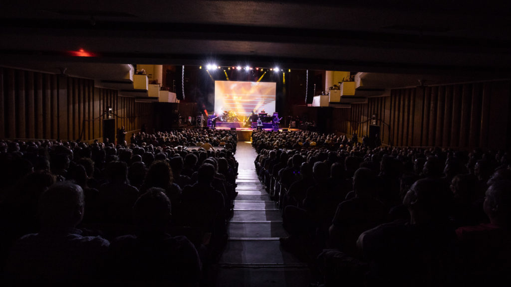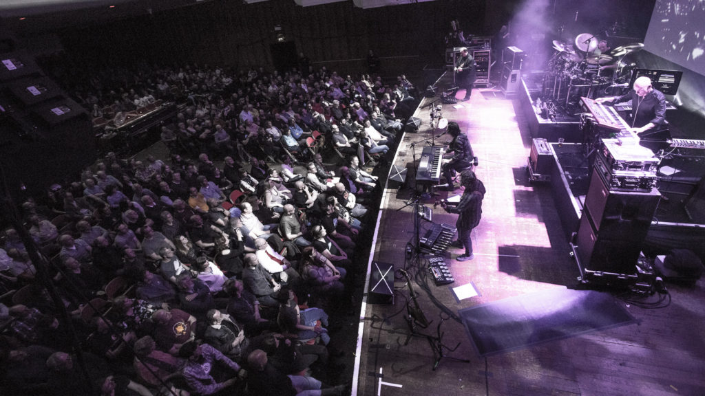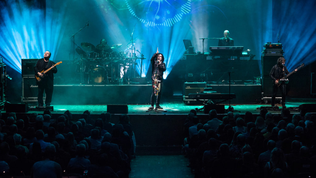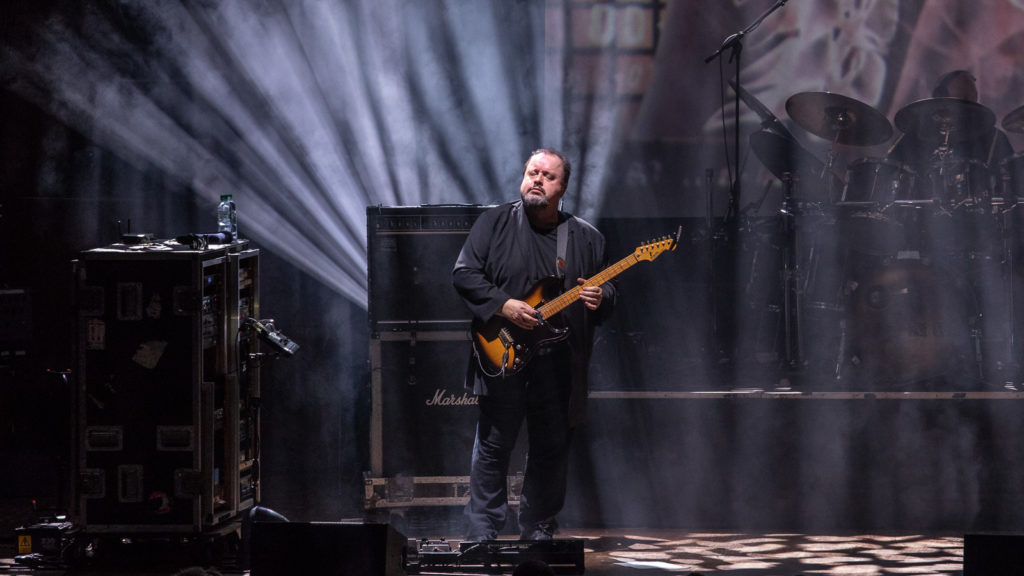 The gentle, pastoral ‘green and pleasant land’ Long-Shadowed Sun intro to El Dorado opens the show, accompanied by suitably bucolic images projected onto a giant screen. But the lyrical storm clouds swiftly gather as gold, war and religion corrupt this Eden, silhouetted families appearing behind barbed wire as Steve Hogarth emotes the refrain “We can’t keep letting them in”, a sliver of hope being admitted only during the coda, The Grandchildren of Apes.