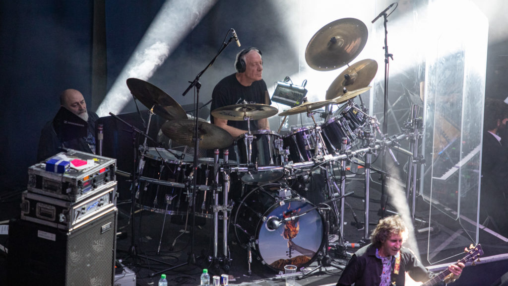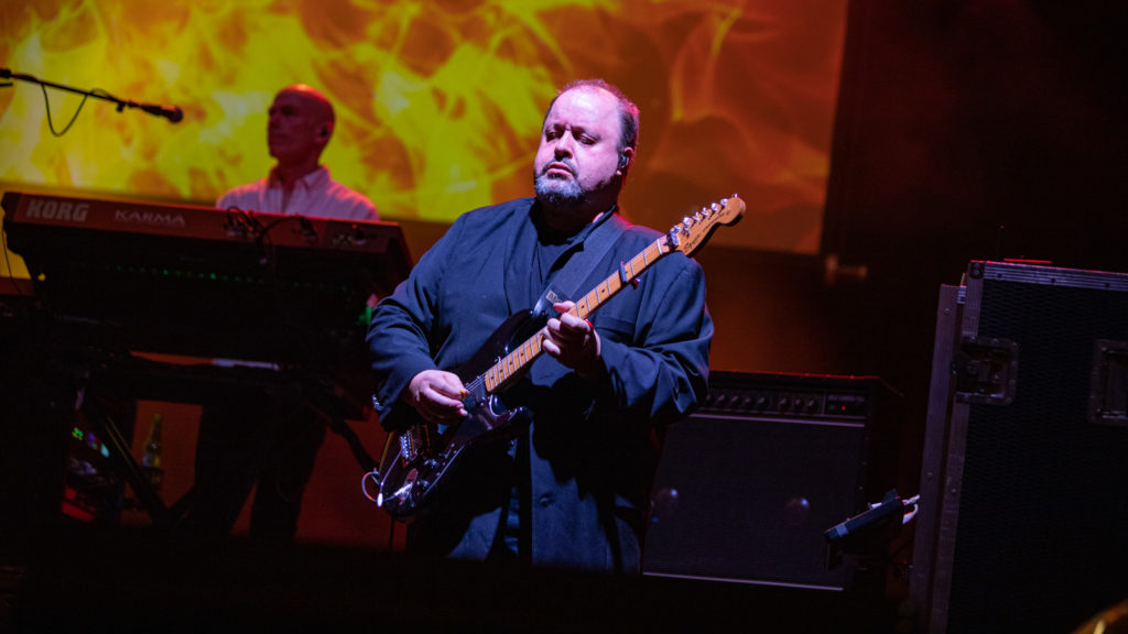 The first of two lengthy encores concludes with the rockin’ Separated Out, which brings the capacity crowd to their feet. Rather brilliantly, the In Praise of Folly quartet also leap to their feet halfway through for a brief detour into Led Zep’s Kashmir. Than it’s back to the This Strange Engine album for a storming rendition of the lengthy title track.