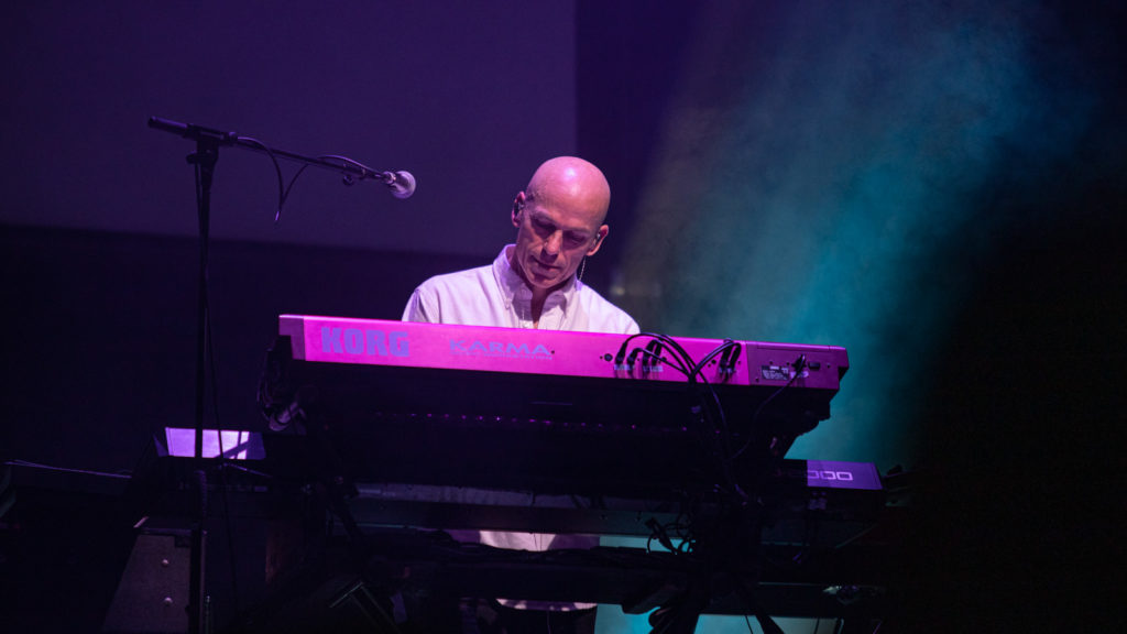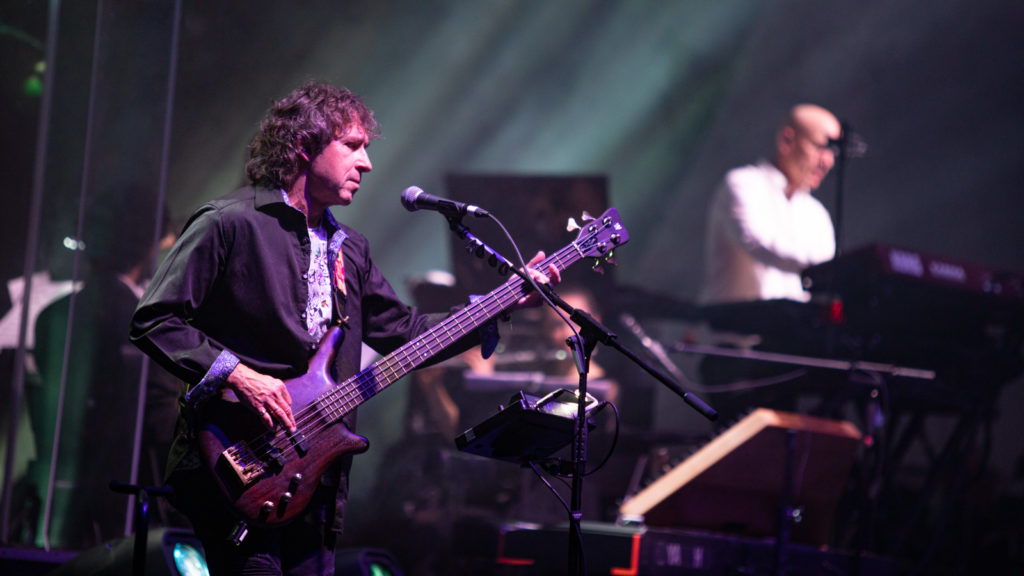 Marillion took a slimmed-down approach at their 2017 Albert Hall show, which continues with the With Friends from the Orchestra album and this accompanying tour. Sandwiched between Ian Mosley’s (acoustically shielded) drum kit and Mark Kelly’s keyboards on the ornate Art Deco Forum’s large stage, the quartet are joined by Sam Morris on French horn and Emma Halnan on flute.