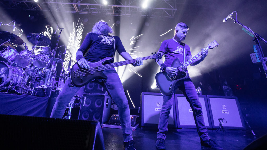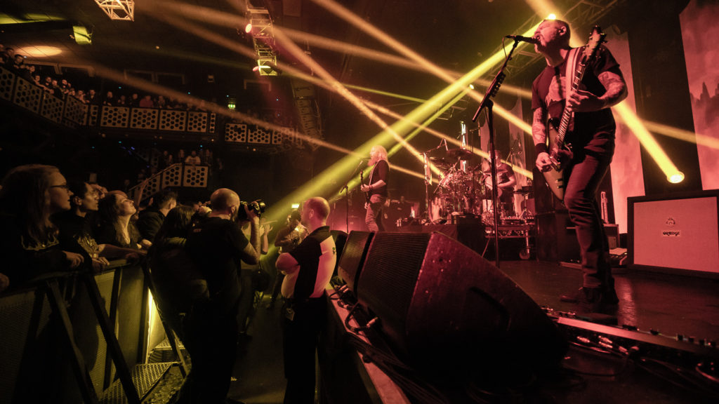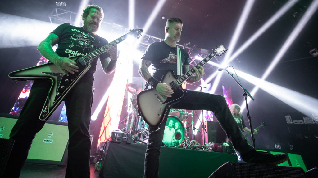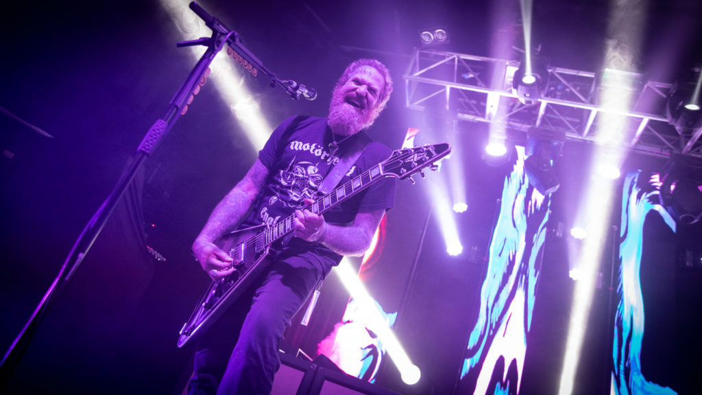Aptly for those of us who endured a drenching in the long queue snaking round the back of the Academy, they use Singin’ in the Rain as an intro tape before hitting us with a triple-whammy of crowd-favourites: Iron Tusk, March of the Fire Ants and Mother Puncher.
