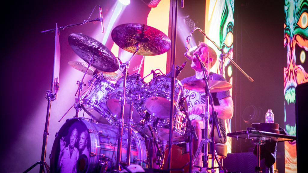 Dailor, in particular, is the kind of drummer you could happily watch all evening, his busy, jazz-influenced style frequently wrongfooting headbangers with its polyrhythms and imaginative fills. What’s more, the talented bastard also manages to take lead vocals on a number of songs, including the stunning Steambreather. Tonight’s amusing bass drum pic? Vintage comedians Rodney Dangerfield and Redd Foxx. How come? Who knows…