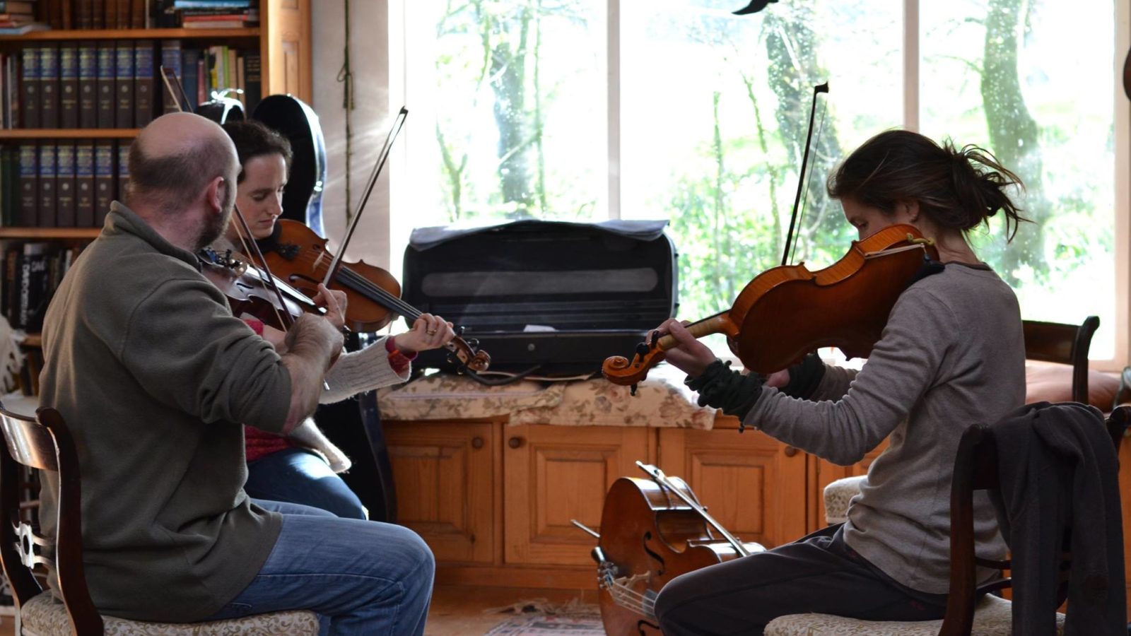 They’ve been playing together for ten years, and although they live in various locations across England and Sweden, their companionship and familiarity shone through in every note. They sat facing the middle of the circle watching each other but also able to engage with the audience who enclosed them on three sides. In a new take on musical chairs, they changed seats in between pieces, and took turns in addressing the audience with relaxed chat about the origins of the music, interspersed with engaging anecdotes and personal stories. They talked about the delight of exploring folk music through the voice of their strings, perfectly illustrated through their range of traditional and contemporary compositions.