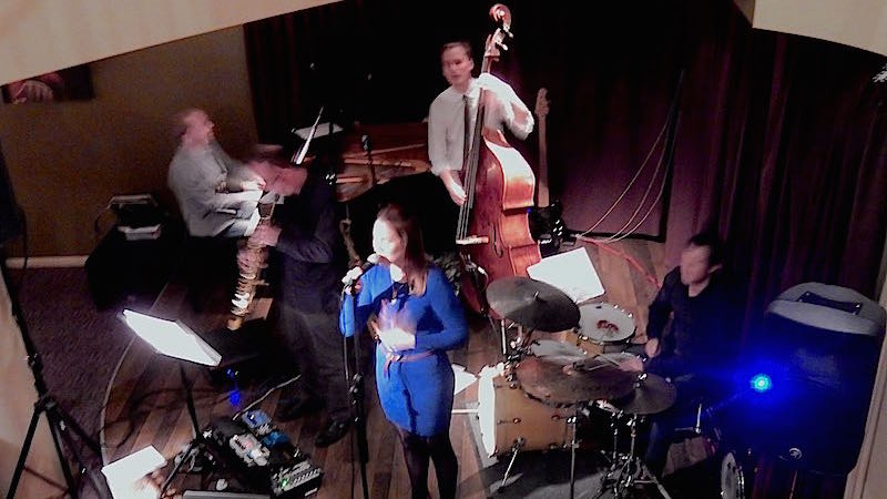 Having started with old favourite Douala the two visitors made an immediate impression on the sound, McMurchies fluent soprano sax insinuated itself around Turville’s expressive openness which led to a solo piano bridge of Jarrett-like elegance. There’s Silence Here followed, a new song spelled with bell-like precision by Emily Wright’s modulated vocals, while the instrumental Zeus grew from a tight-woven sax loop foundation .